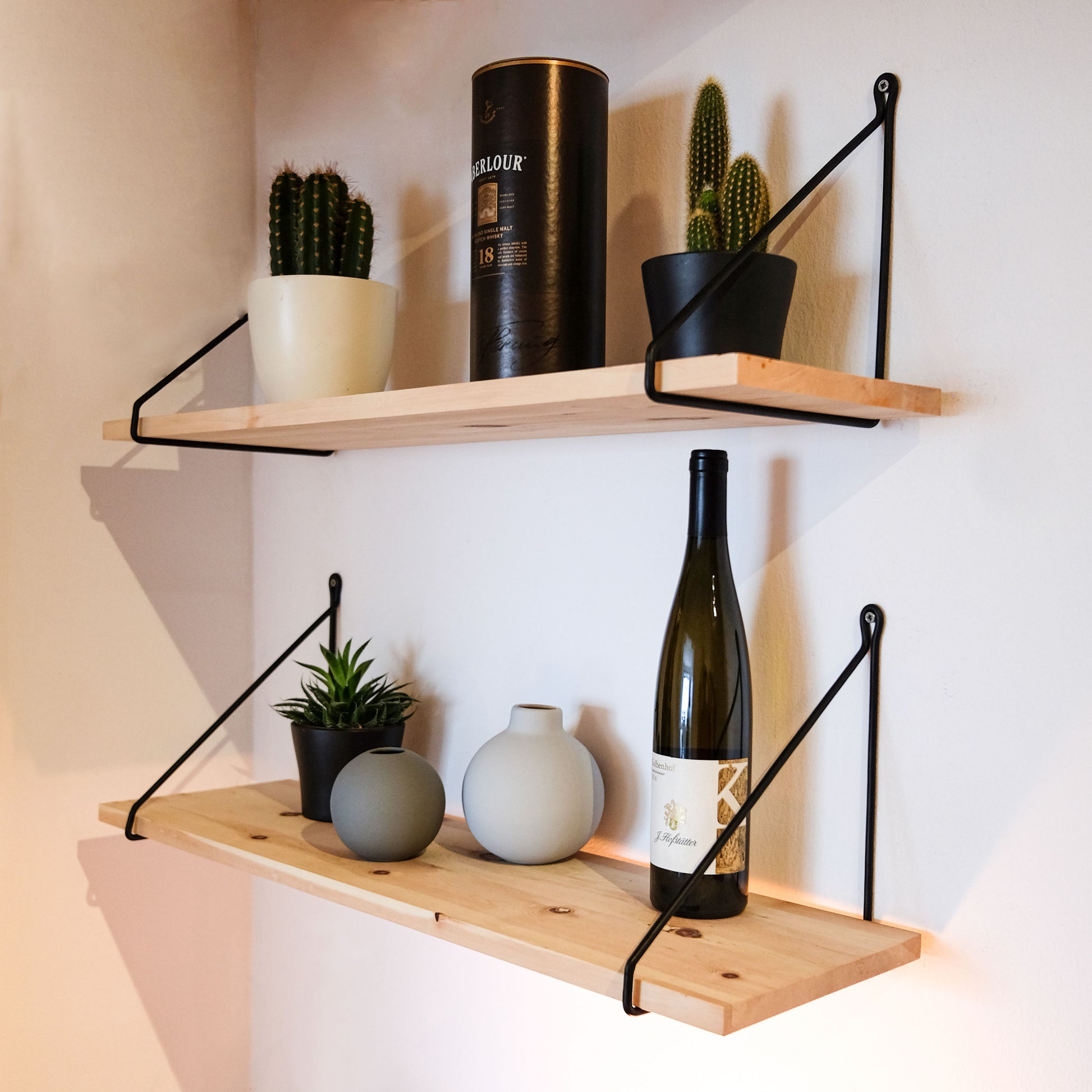 Das Regal ist sehr schnell und problemlos an der Wand befestigt. Einfach an der vorgesehenen Stelle die Regalhalterungen anbringen, Regalbrett einlegen und schon hast du einen neuen dekorativen Abstellplatz in deinem Zuhause.